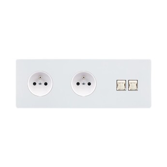 Socket, M, Triple horizontal, Blanc mat, Prise-2P+T x2, Prise-RJ45 ...