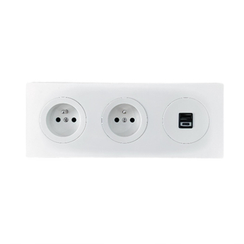 Socket, DOM, Triple horizontal, Matt white, Prise-2P+T x2, Prise-US...