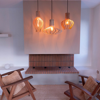 Hanging lamp, Kåputafunat, wood, birch, Ø30cm, H39cm - Piatoni