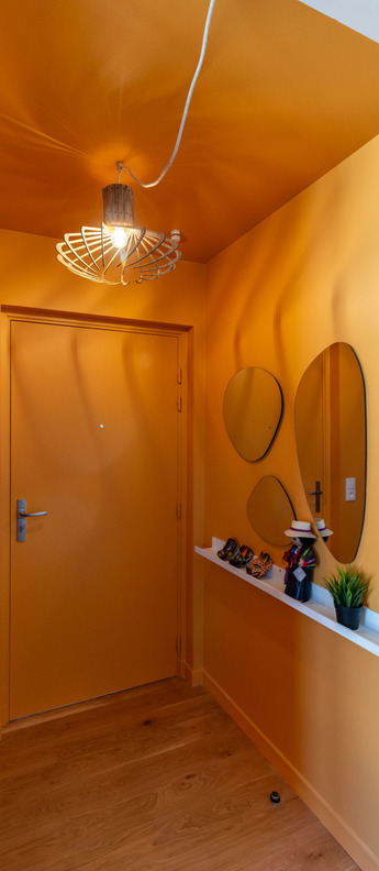 Hanging lamp, Gigi n°3, orange, white, purple cable, Ø28cm, H14,5cm...
